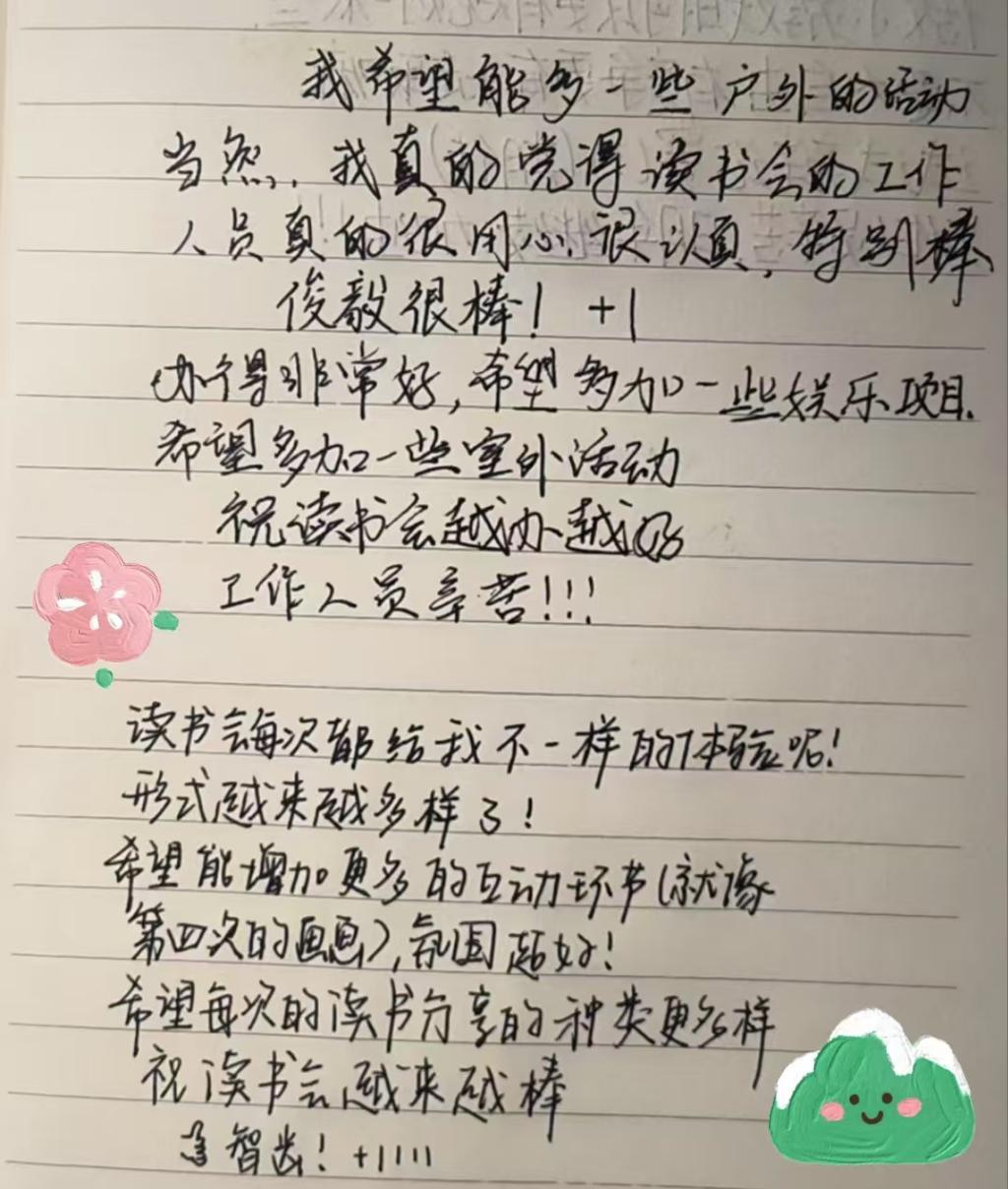 最后,在学生会负责人的带领下,播放了一年来读书会活动的珍贵影像材料,进行了回顾和总结。同时,由每个成员写下对读书会的感悟和对未来的期待,这些文字将成为成员们共同的记忆和读书会继续前进的动力。beat365中文登录入口读书会,2025年期待我们的再会!
