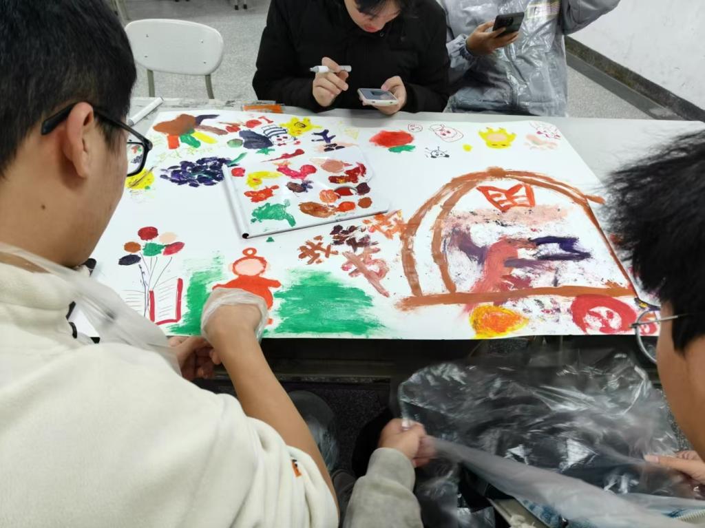 接下来,读书会成员们准备了一个充满创意与心意的活动环节——“书香绘梦海报创作”。大家以小组为单位,戴上一次性手套,在画布上留下对书籍和读书活动的热爱,并与其他小组分享作品。成员们纷纷表达了对读书会的深厚情感,感谢在此收获的友谊、知识以及个人成长。他们希望读书会能够继续成为大家交流思想、分享心得的平台,也希望未来能有更多机会通过阅读来丰富自己的内心世界。