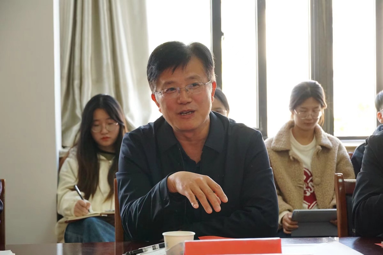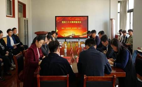 徐龙飞在宣讲报告中指出,党的二十大在我们党和国家历史上具有极其重大的里程碑意义,要深刻领会党的二十大精神的丰富内涵。徐龙飞分享了校党委书记胡金焱到党委组织部党支部宣讲时的指导意见,一是要学“总”,全面系统学习把握党的二十大精神,原原本本学习报告全文,深刻领会党的二十大精神的精髓要义,做到学懂弄通;二是抓“分”,结合工作实际往实里学,融入个人体会和感受,找准结合点和切入点,做到知行合一,将学习成效转换为工作实效。徐龙飞分享了自己的学习体会,结合组工工作和基层党建,提出要进一步加强青年干部培养,为学校学院事业发展储备人才;要不断加强基层党组织建设,培育标杆学院和样板支部;要进一步强化党员队伍建设,发挥先锋模范作用,注重从青年学生和青年教师中发展党员。